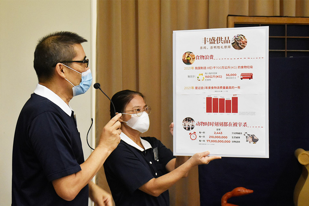 茶会上,每张桌子的桌长会和参与民众分享不同祭拜方式,张淑贞说,以往参与者在活动结束后,虽然认识到以荤食祭拜不好,但却不懂如何转用素食来祭拜,“(民众)好像有一点悟到了,可是没有人指引,所以邀约环保组帮忙,把会众迷思转为‘悟’。”