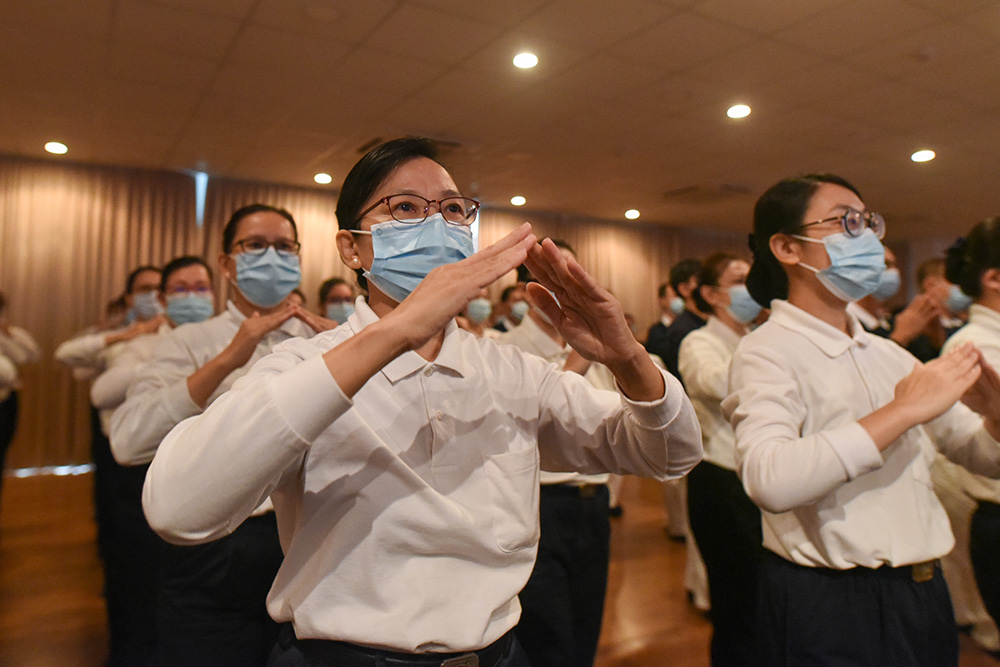 场地和人数都是挑战。虽然克服了新加坡静思堂的场地限制,参与的人仍是一大考验。“我们四月开始展开每星期的练习,但碰到新加坡(防疫)刚开放,大家陆续安排回家,每次练习少到只有两位种子。”